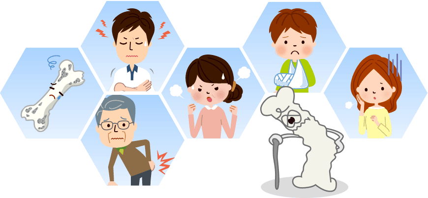 - 骨が丈夫になることで400余りの病の原因が減る。